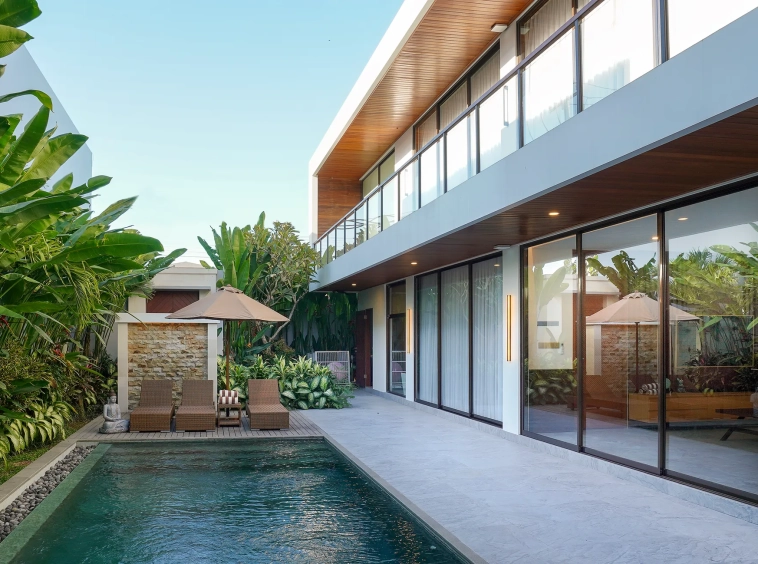 This modern 2-bedroom villa is located in the charming and fast-developing area of Pererenan, Canggu. Surrounded by tropical greenery, Pererenan offers a peaceful yet connected lifestyle with proximity to beaches, restaurants, cafes, and wellness studios. It’s a serene neighborhood with a growing expat and investor community.