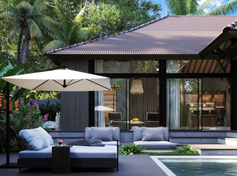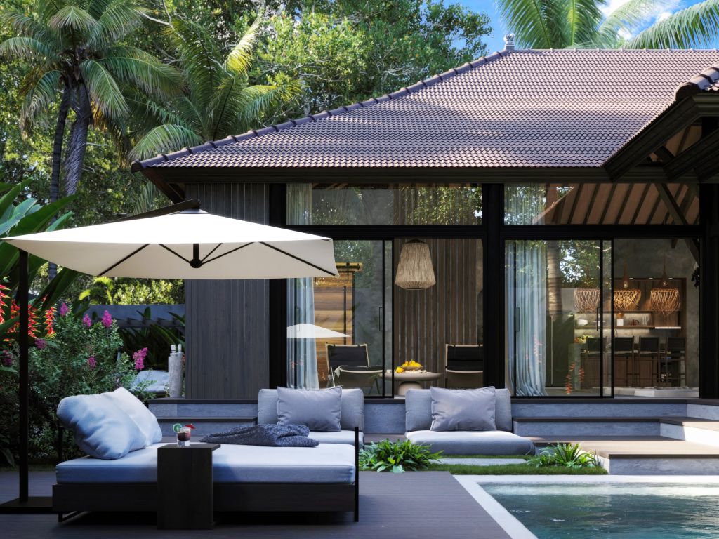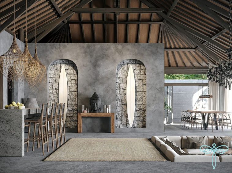 The villa blends traditional ethnic Indonesian style with a modern surfer vibe, creating a unique and relaxing living environment.
